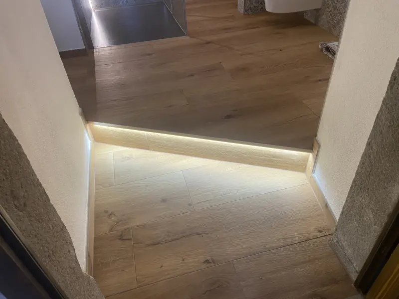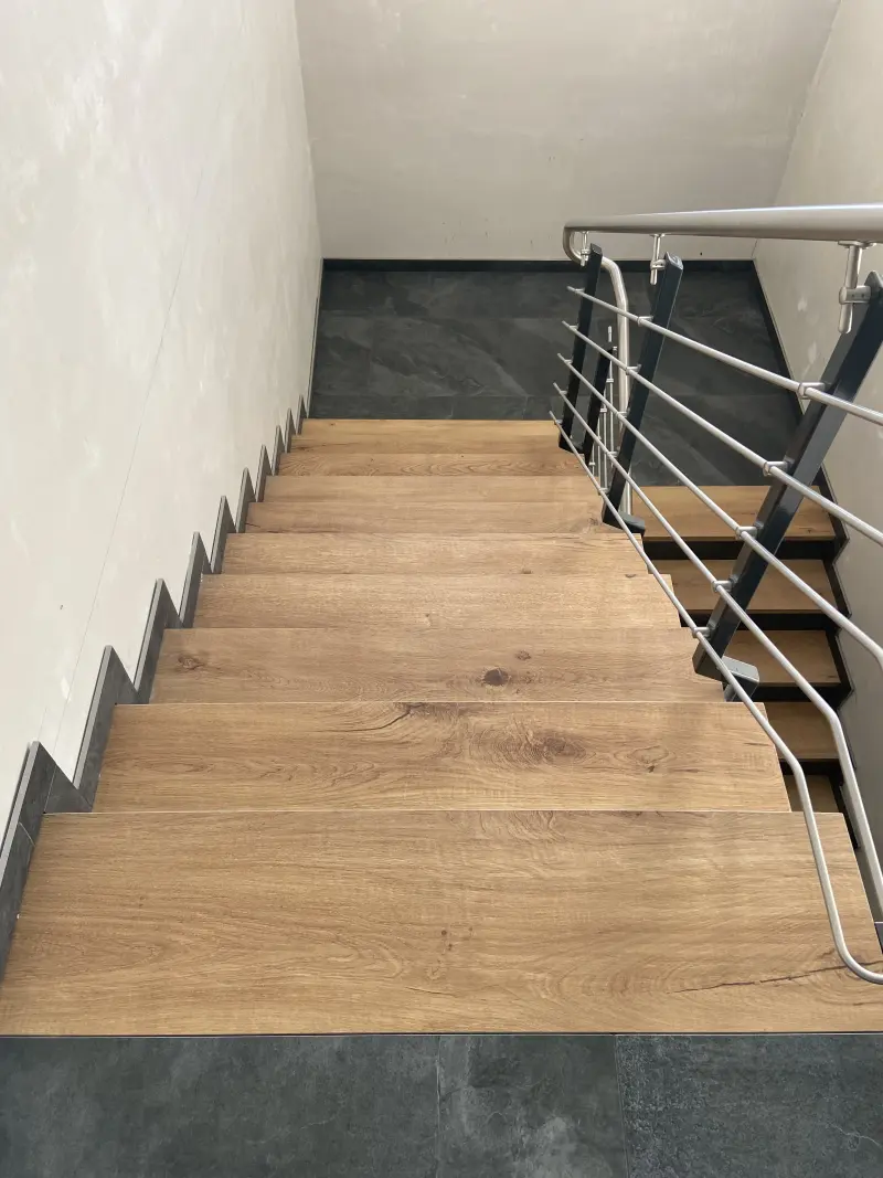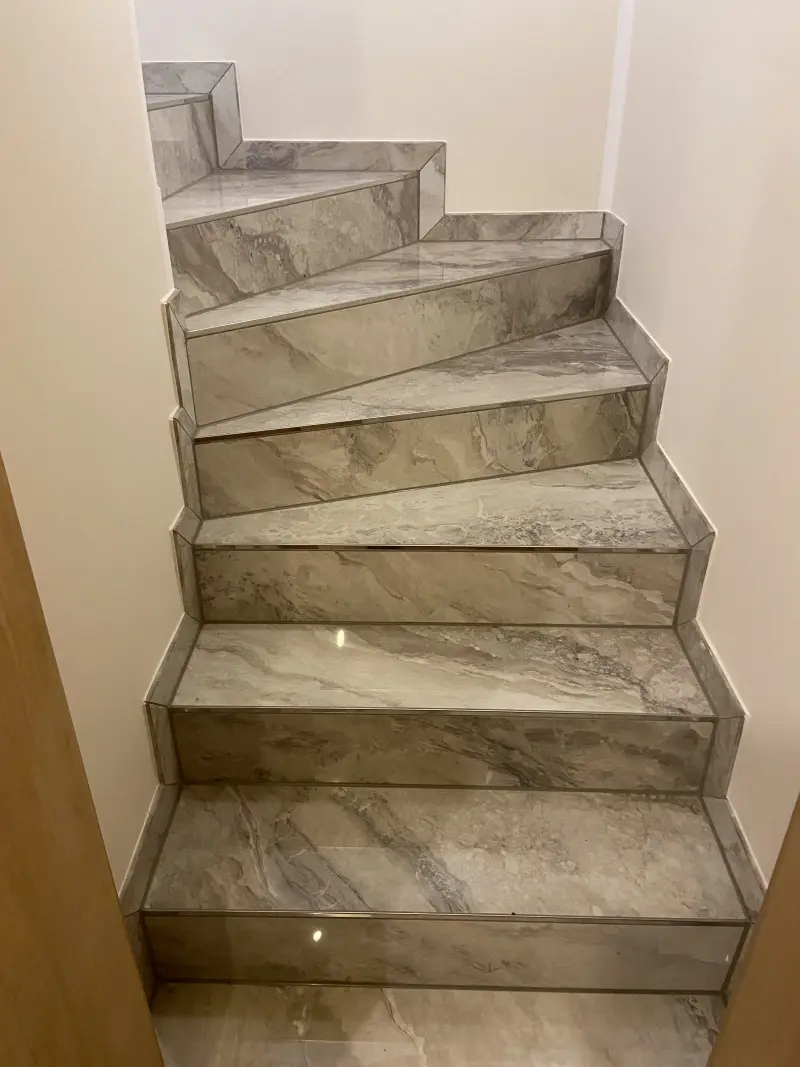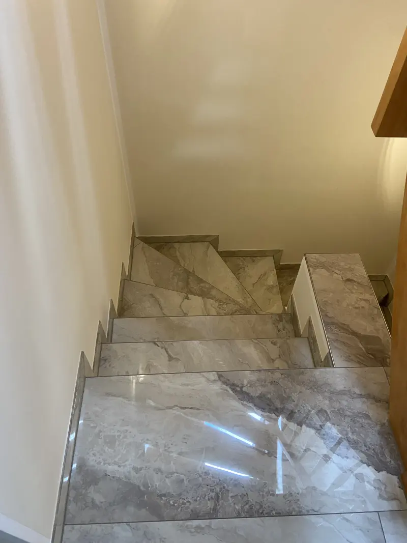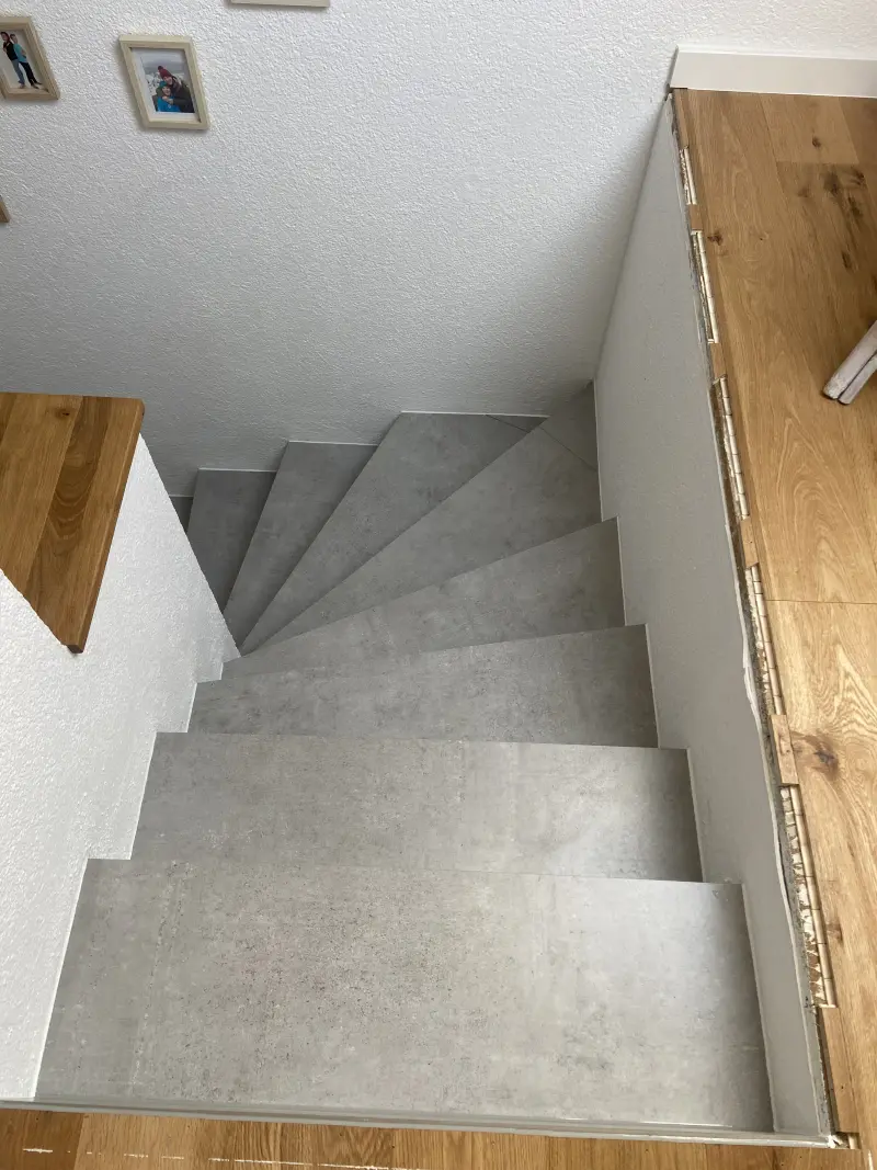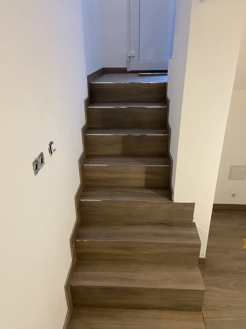 Sichere, langlebige Treppen sind unser Markenzeichen. Ob im Keller, im Treppenhaus oder als repräsentatives Element im Wohnbereich: Wir verlegen Fliesen und Naturstein exakt nach Maß – gern auch mit farblich abgesetzten Kanten oder rutschhemmenden Profilen. Für besondere Effekte verwenden wir LED‑Beleuchtung unter den Stufen.