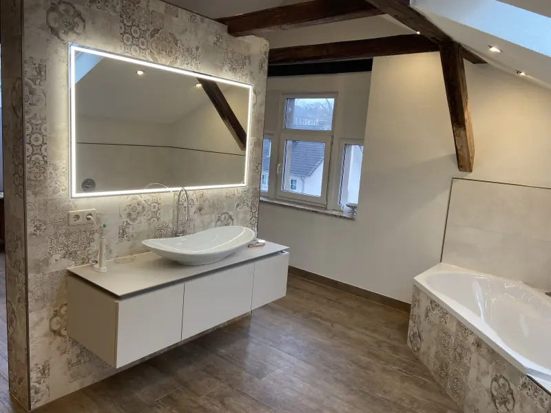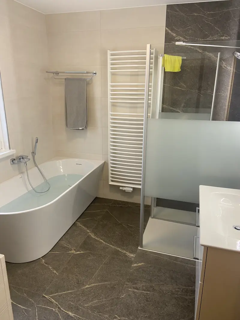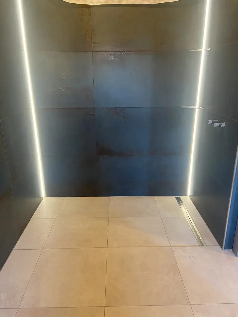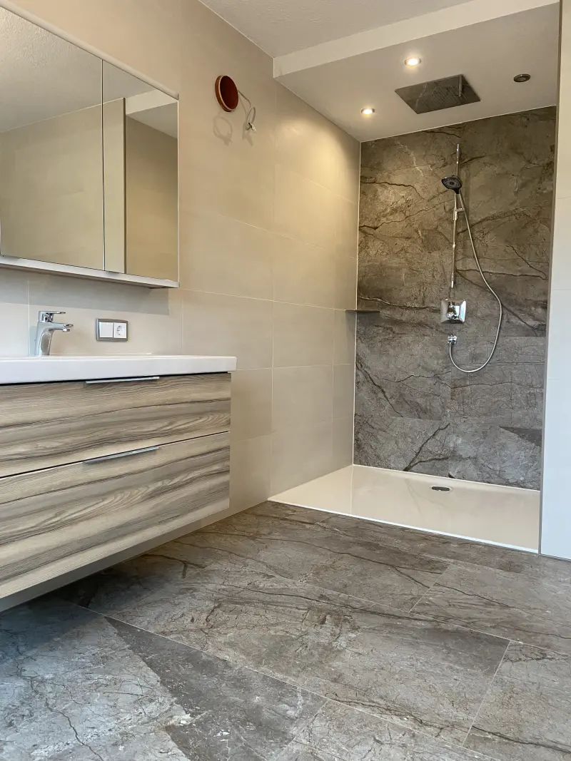 Ob Neubau oder Sanierung – wir gestalten Ihr Bad mit modernen Fliesen und durchdachten Details. Barrierefreie Lösungen, fugenlose Optiken und großformatige Fliesen schaffen klare Linien und ein großzügiges Raumgefühl. LED-Lichtdesign sorgt für harmonische Akzente und ein individuelles Ambiente. Auf Wunsch übernehmen wir die komplette Koordination aller Gewerke, damit Sie schnell und stressfrei Ihr neues Bad genießen können.