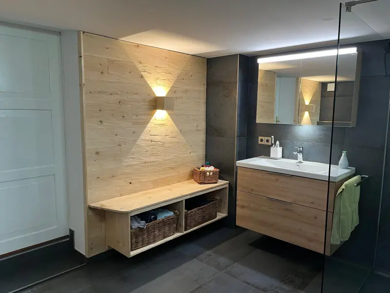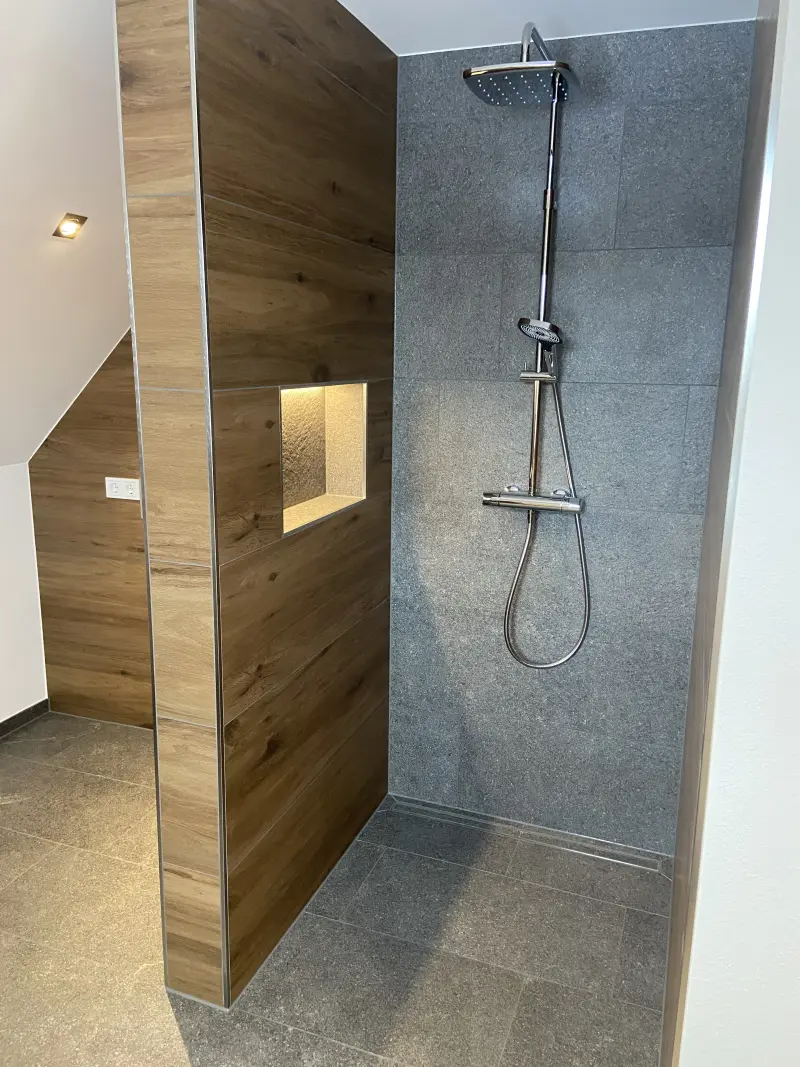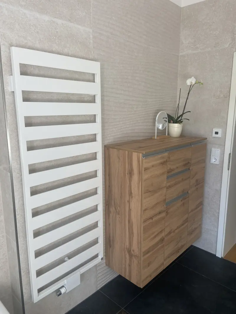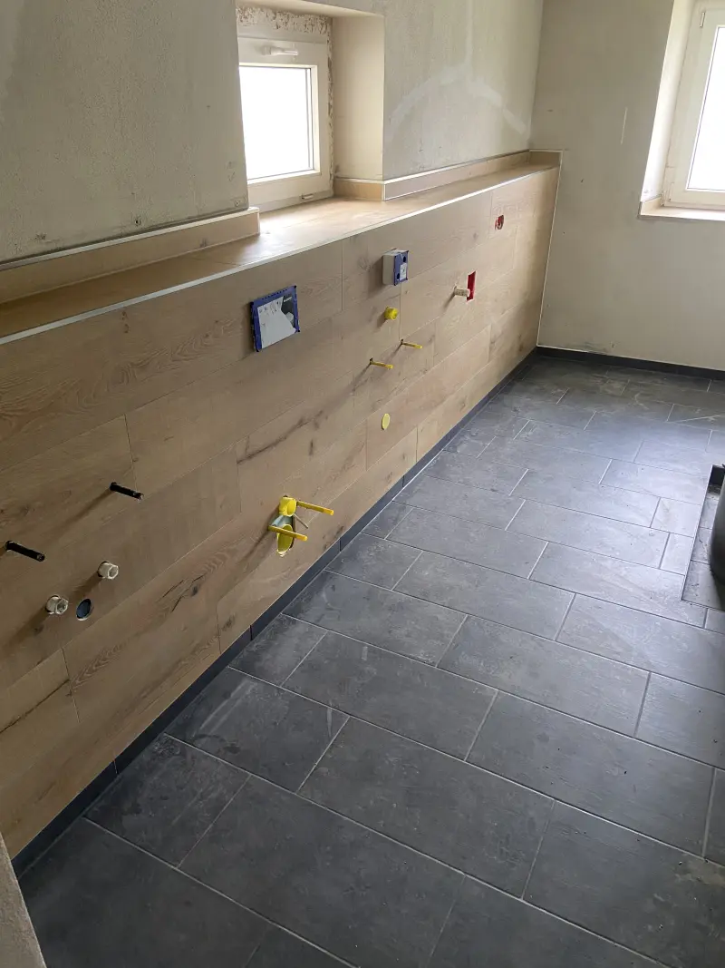 Wir schaffen atmosphärische Räume mit 3D‑Wandgestaltungen aus Riemchen, Holzoptik‑Fliesen oder Naturstein. Fußboden- und Wandheizungen integrieren wir fachgerecht, sodass Sie im Winter warme Füße haben und im Sommer ein angenehmes Raumklima. Vinylbeläge ergänzen unser Portfolio für alle, die die Vorteile moderner Designböden nutzen möchten.