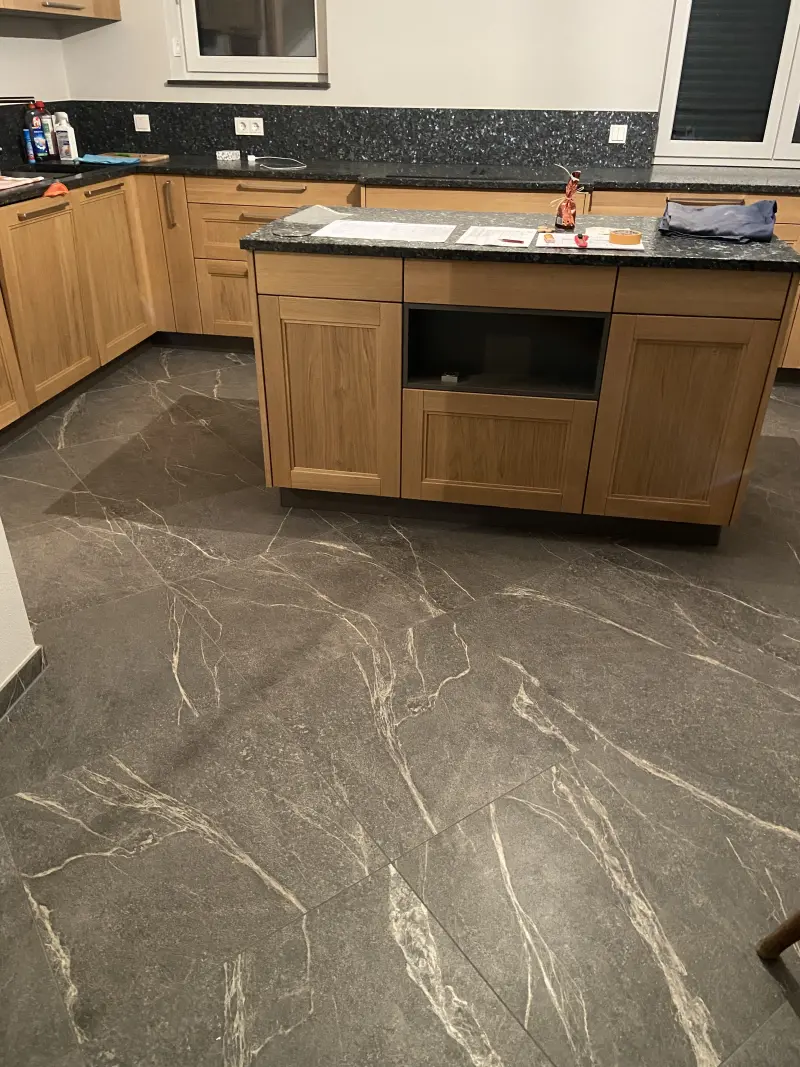 Eine Küche muss funktional sein und zur bestehenden Einrichtung passen. Wir sorgen mit großformatigen oder kleinteiligen Fliesen für eine fugenarme Oberfläche, die sich leicht reinigen lässt. Farbharmonien stimmen wir auf Ihre Einbauküche ab, damit alles wie aus einem Guss wirkt. Alternativ verlegen wir hochwertige Vinylböden, die angenehm zu begehen und pflegeleicht sind.